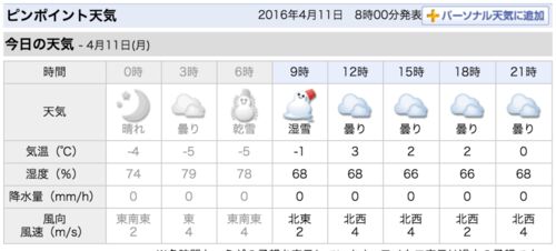 すでに桜散る地域があれば、雪降る地域もある。桜満開の予習。